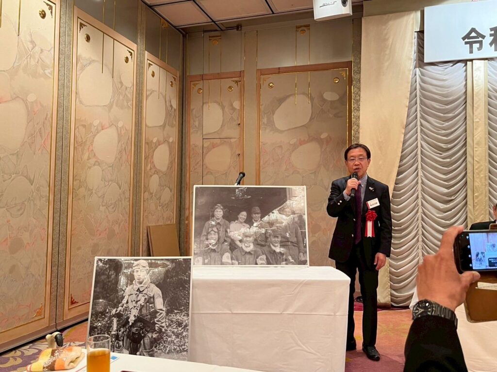 直会では、特攻生存者であられた板津忠政氏のご長男・板津昌利氏より、御父君の生き様についてご講話を賜り、参加者一同深い感銘を受けました。また、同日に三重支部の設立記念式典を執り行い、会旗でもある国旗日の丸の授与式を挙行いたしました。三重支部の今後の発展と地域の活性化を心より祈念申し上げます。